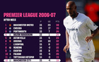 本赛季英超前15轮第4-12分差小于5分,上一次发生在06-07赛季